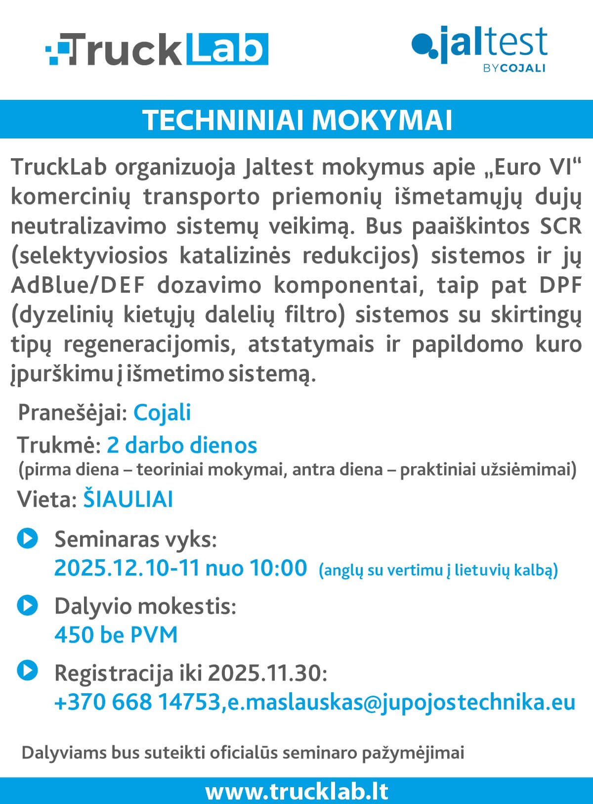 2025-12-10, 11 – EURO 6. Išmetamųjų dujų apdorojimo sistemų diagnostika (anglų kalba su vertimu į lietuvių kalbą) – INFO